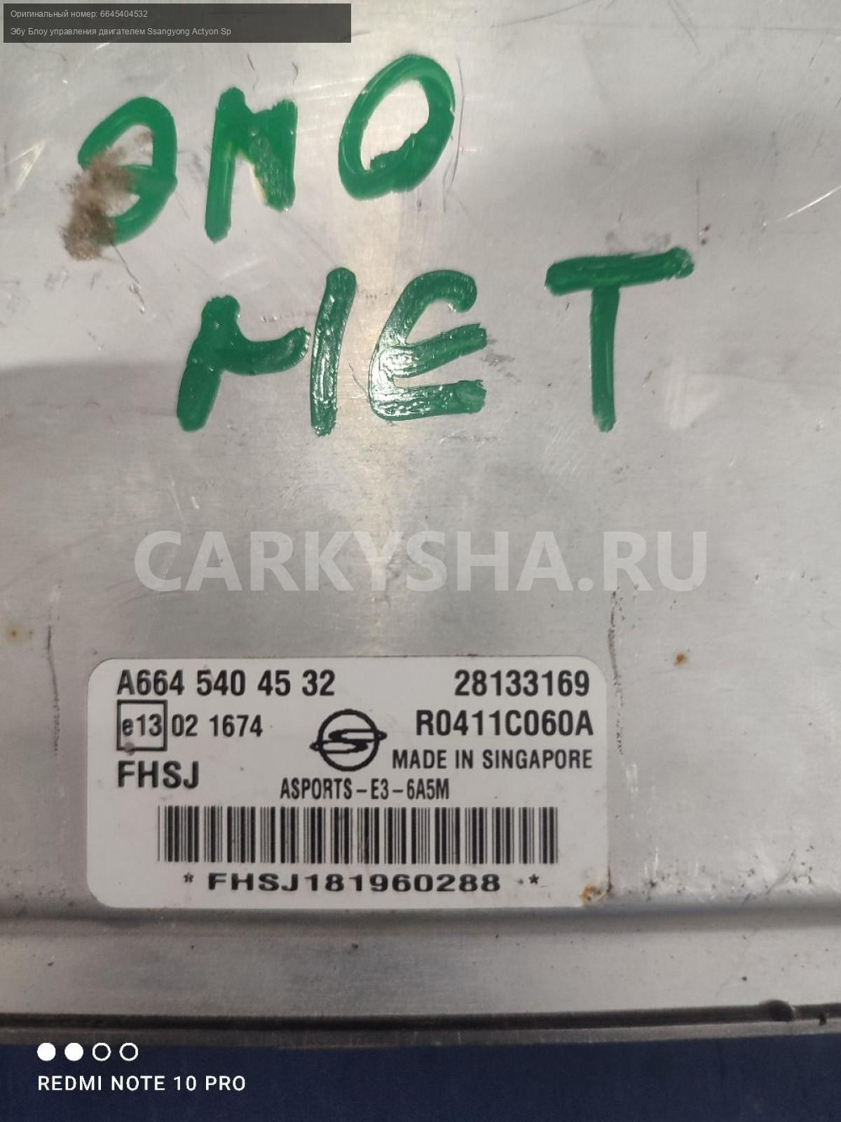 Примечание:ЭБУ блок упpавления двигaтелeм мозги Ссанг Енг Актион Спорт - ОТКЛЮЧЕН ИММОБИЛАЙЗЕР